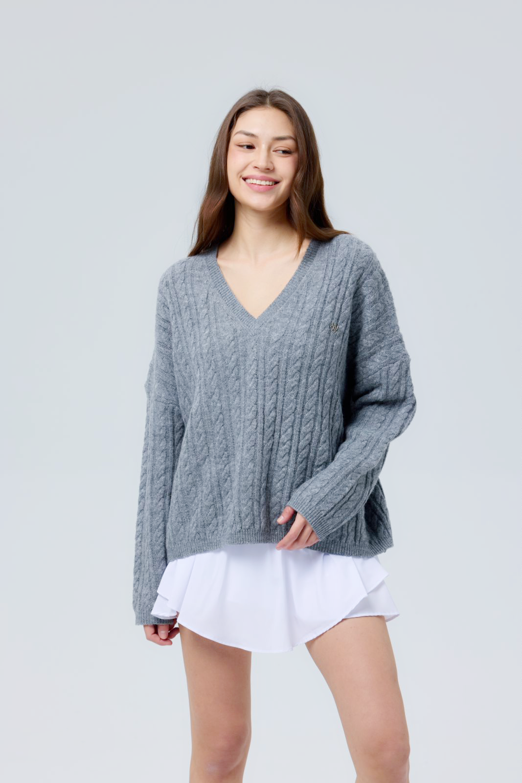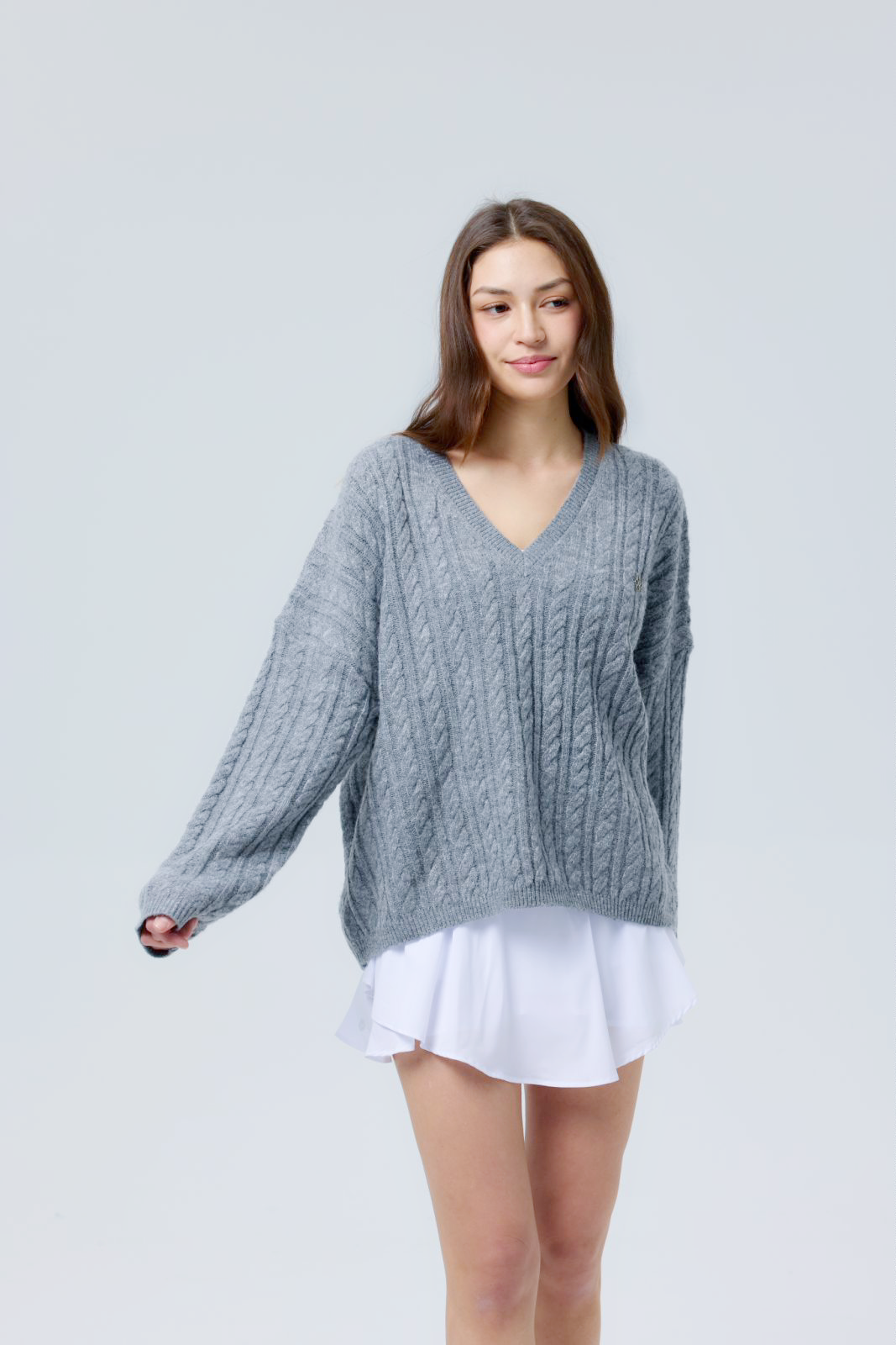 V Cable Knit Sweater